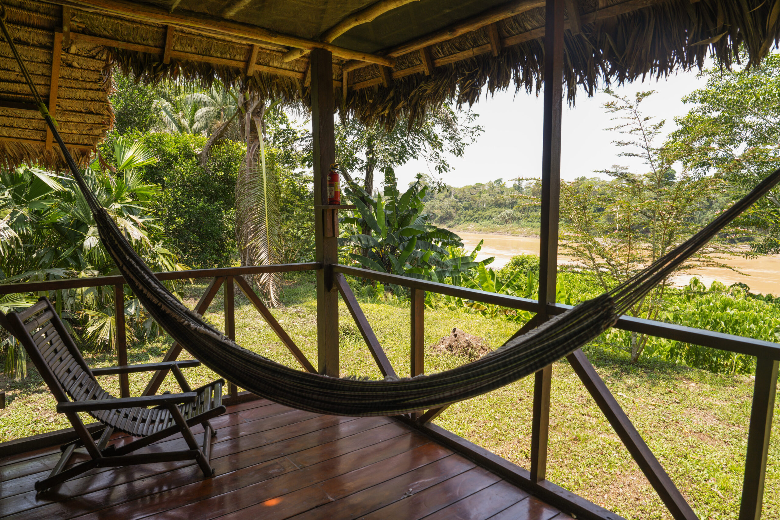 Most bungalows offer stunning views of the Tambopata River, while others overlook the tranquil jungle. Each spacious bungalow, approximately 35m², is equipped with private bathrooms and mosquito nets, ensuring a comfortable stay in harmony with nature.